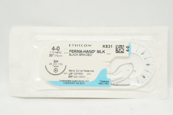 Ethicon K831 4-0 PERMA-HAND SILK Suture Black Braided SH 26mm 1/2c Taper 30inch