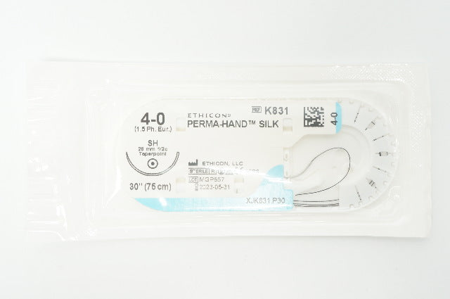 - Ethicon K831 4-0 PERMA-HAND SILK Stre SH 26mm 1/2c Taperpoint, 30inch (x)