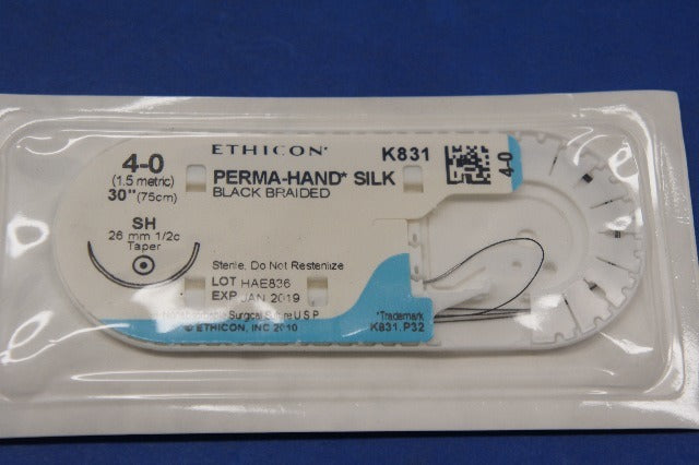 - Ethicon K831 Perma-Hand Silk, SH 26mm 1/2c Taper, 30