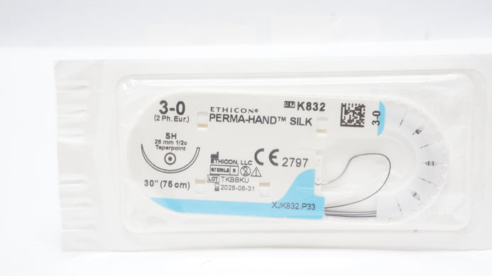 Ethicon K832 3-0 PERMA-HAND SILK Stre SH 26mm 1/2c Taperpoint, 30inch