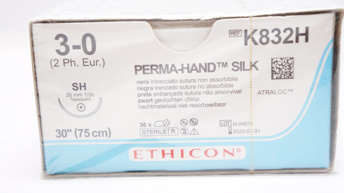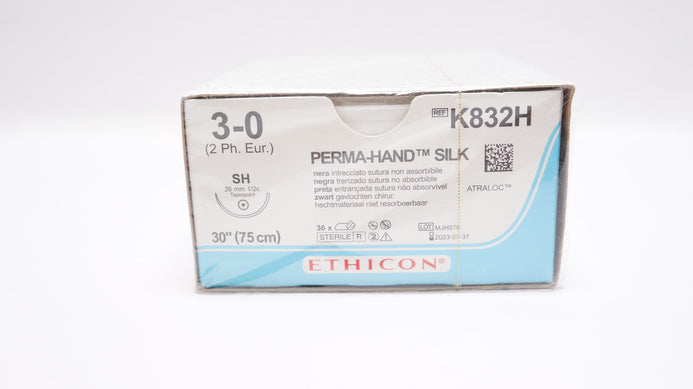 - Ethicon K832H 3-0 Perma-Hand Silk Stre SH 26mm 1/2c Taperpoint 30In-Box of 36(x)