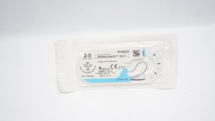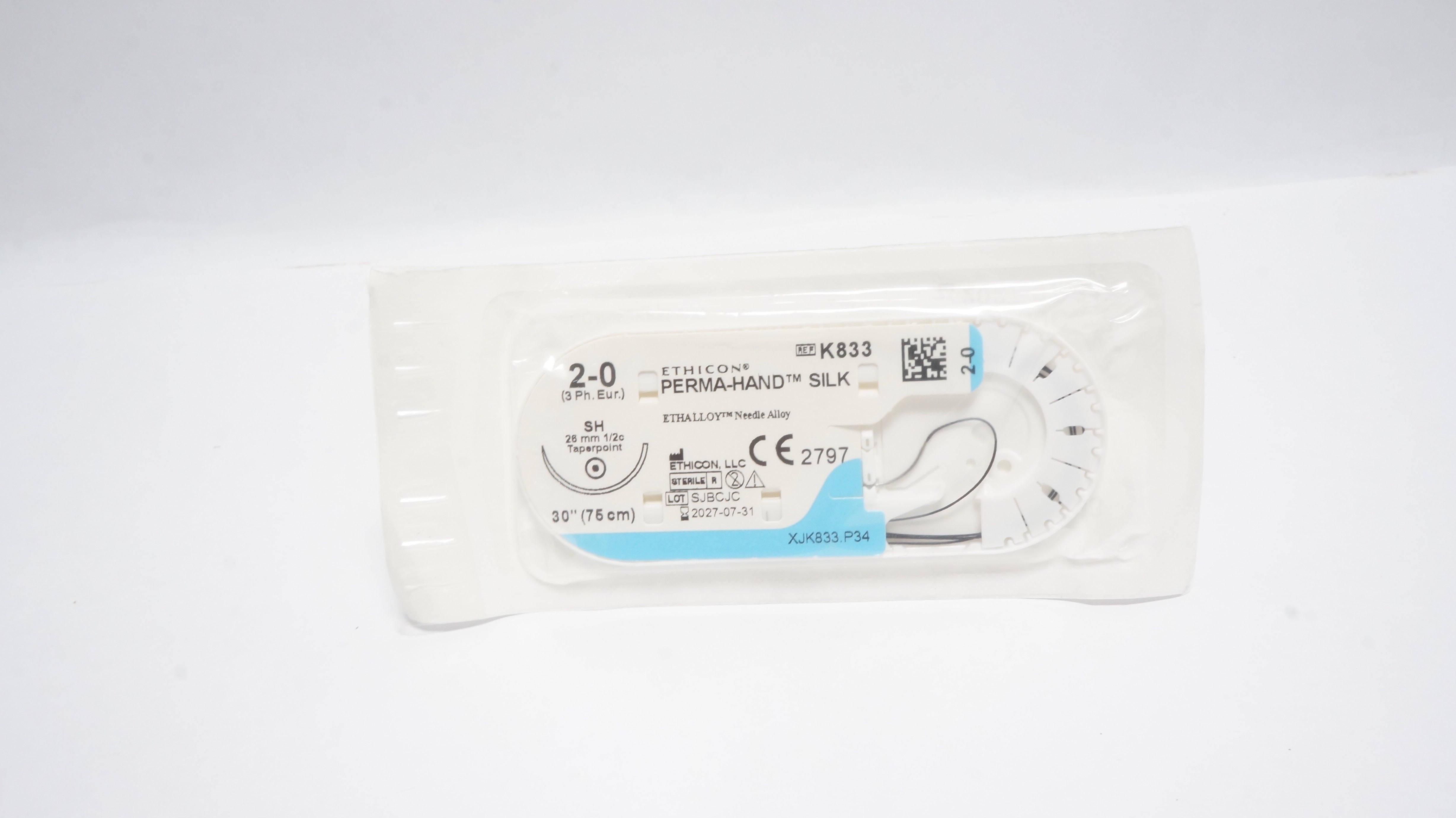 - Ethicon K833 2-0 PERMA-HAND SILK Stre SH 26mm 1/2c Taperpoint, 30inch