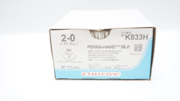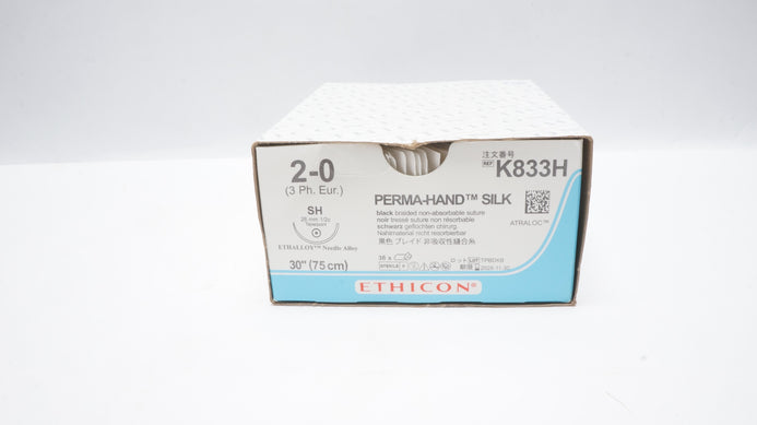 - Ethicon K833H 2-0 PERMA-HAND SILK Stre, SH,26mm 1/2c Taper,30in. - Box of 33