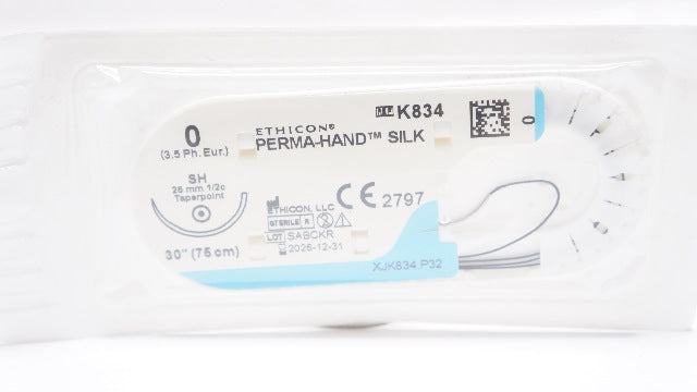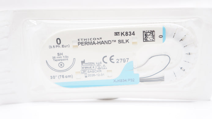 - Ethicon K834 0 PERMA-HAND SILK Black Braided Stre SH 26mm 1/2c Taperpoint 30inch