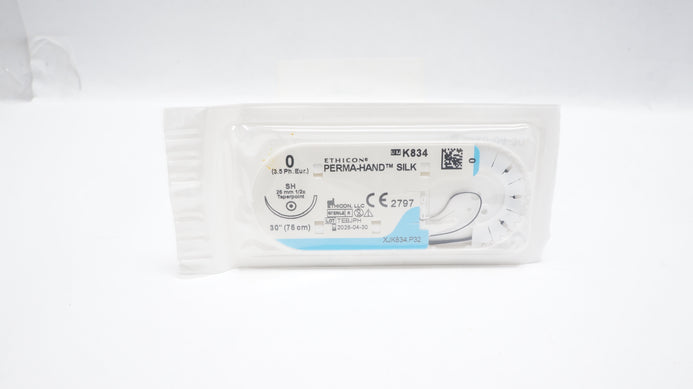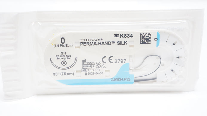 Ethicon K834 0 PERMA-HAND SILK Black Braided Suture SH 26mm 1/2c Taperpoint 30inch