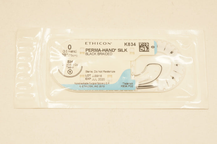 - Ethicon K834 0 PERMA-HAND SILK, SH, 26mm 1/2c, 30inch