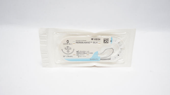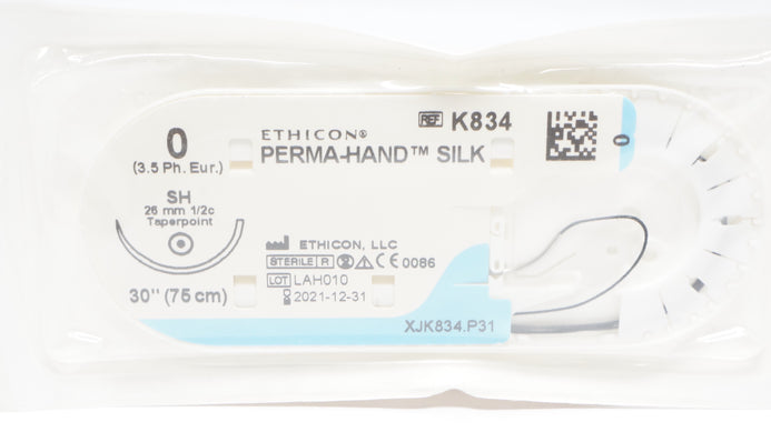 - Ethicon K834 0 Perma-Hand Silk SH 26mm 1/2c Taper 30inch (x)
