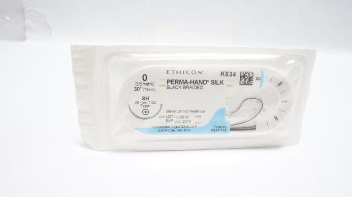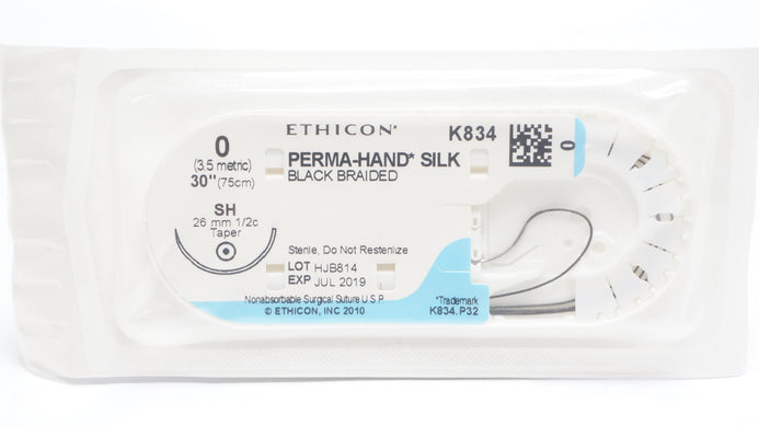 Ethicon K834 0 Perma-Hand Silk Stre Black Braided SH 26mm 1/2c Taper, 30inch (x)