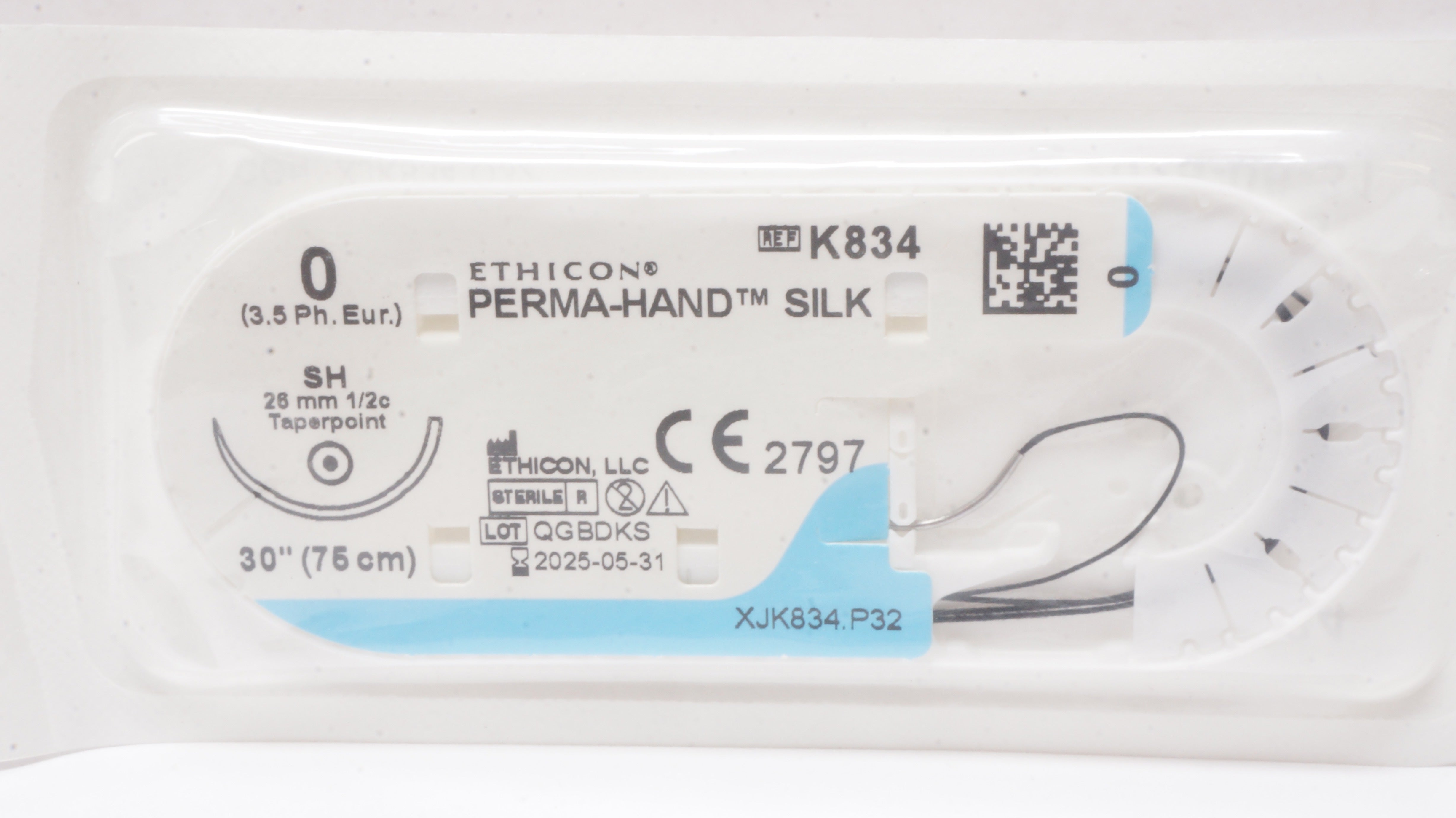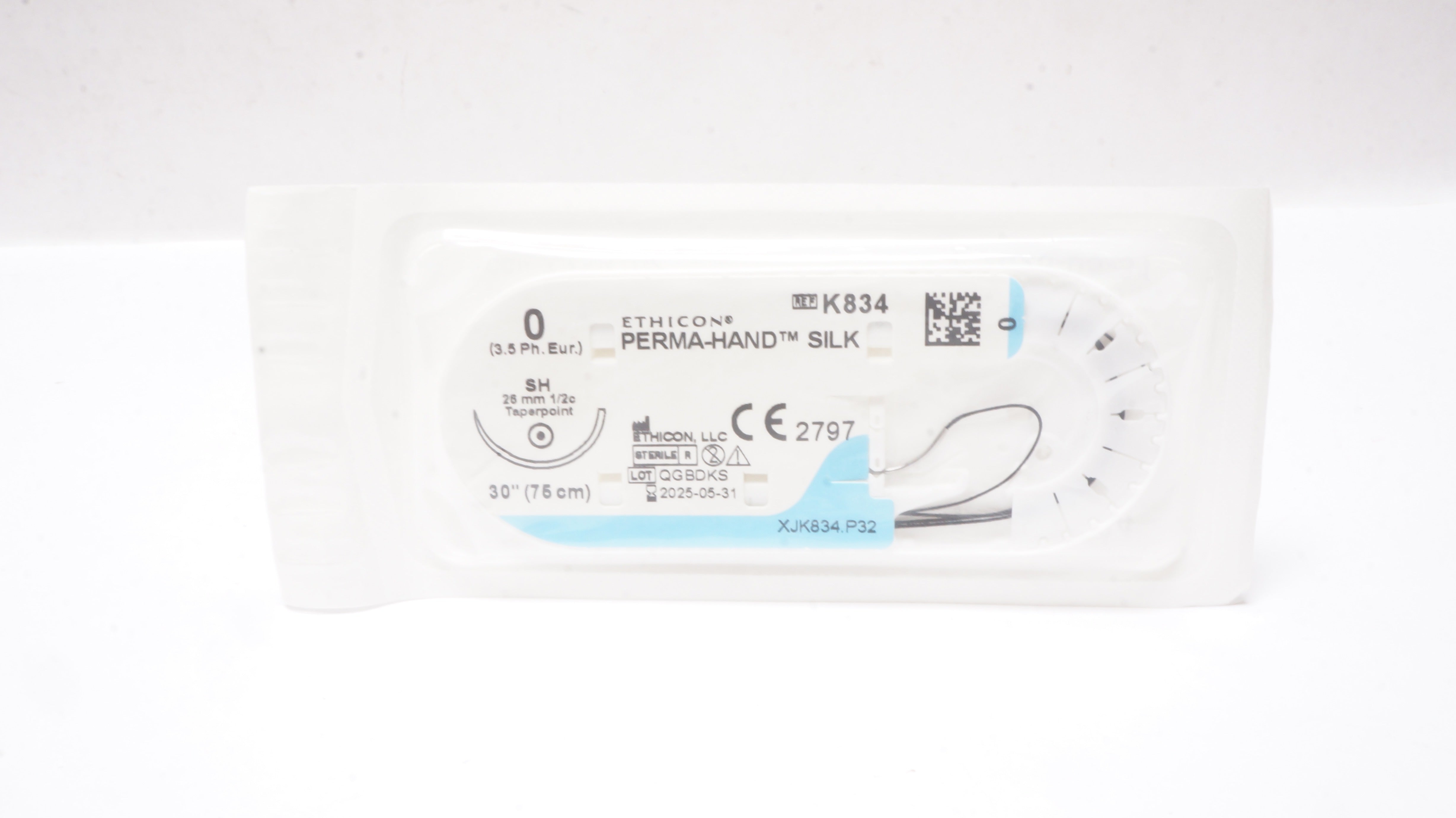 - Ethicon K834 0 SILK, SH, 26mm 1/2c Taper, 30inch (X)