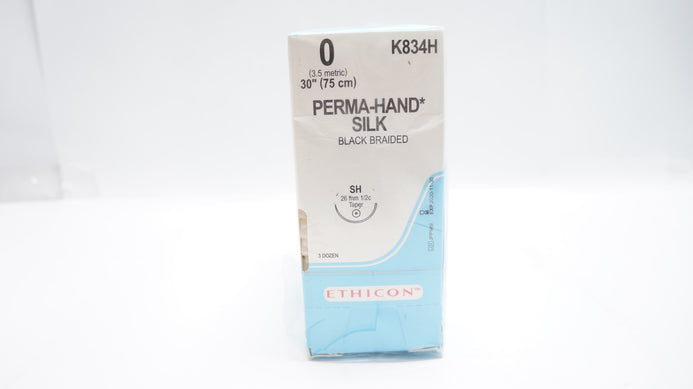 - Ethicon K834H 0 Perma-Hand SILK Stre SH 26mm 1/2c Taper 30inch (x) - Box of 36