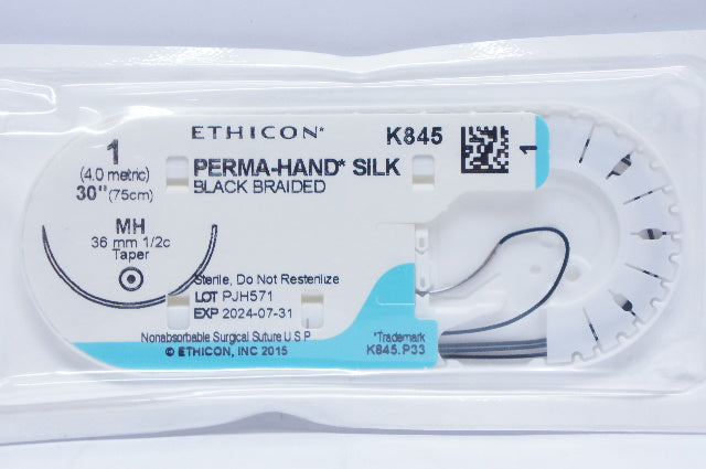 Ethicon K845 1 PERMA-HAND SILK Stre, MH, 36mm 1/2c Taper, 30inch