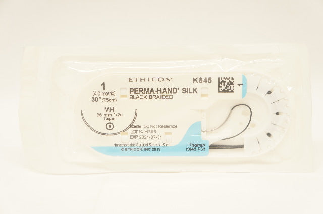 Ethicon K845 1 Perma-Hand Silk Surgical Stre MH 36mm 1/2c Taper 30inch (x)