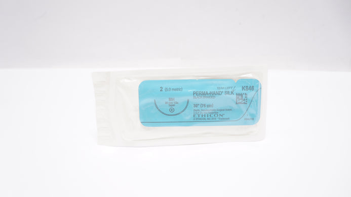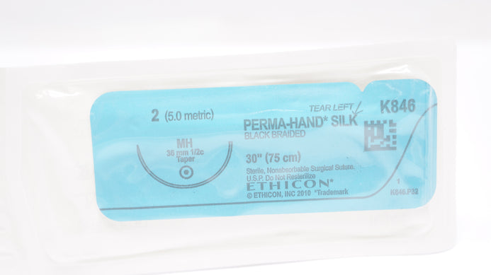 Ethicon K846 2 Perma-Hand Silk Black Braided Stre MH 36mm 1/2c Taper 30inch (x)