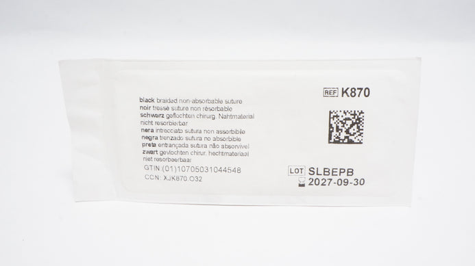 Ethicon K870 5-0 Perma-Hand Silk Black Braided Suture RB-1 17mm 1/2c Taperpoint, 30inch