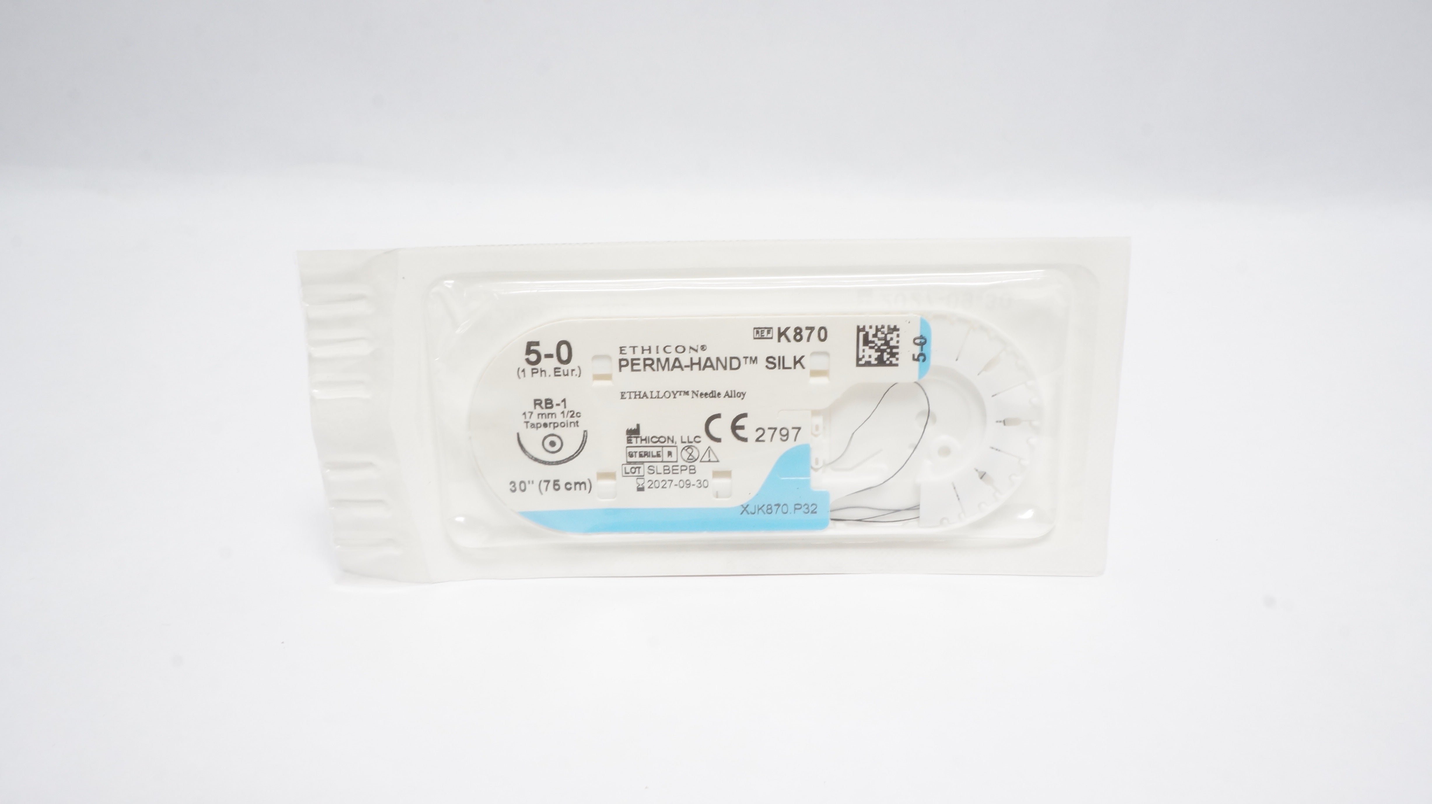 Ethicon K870 5-0 Perma-Hand Silk Braided Stre RB-1 17mm 1/2c Taperpoint, 30inch