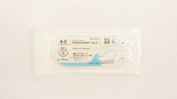 - Ethicon K871 4-0 PERMA-HAND SILK Stre RB-1 17mm 1/2c Taperpoint, 30inch