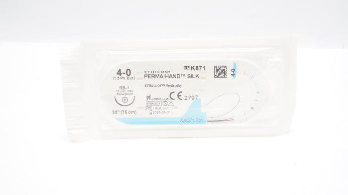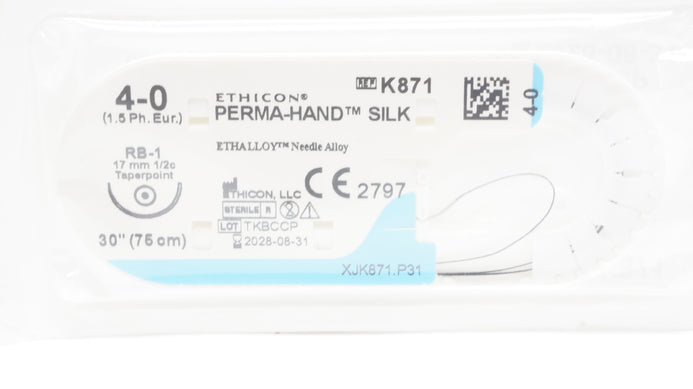 Ethicon K871 4-0 PERMA-HAND SILK Stre RB-1 17mm 1/2c Taperpoint, 30inch