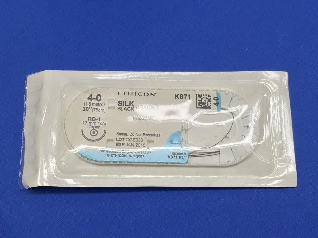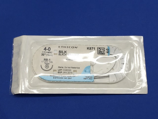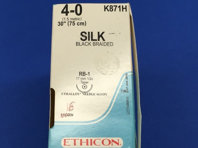 Ethicon K871H PERMA-HAND, Taper Point, Non-Absorbable, RB-1 17mm, Black Braided 30" 75cm, Size: 4-0