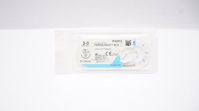- Ethicon K872 3-0 Perma-Hand Silk Stre RB-1 17mm 1/2c Taperpoint, 30inch