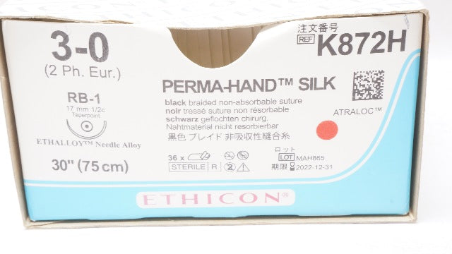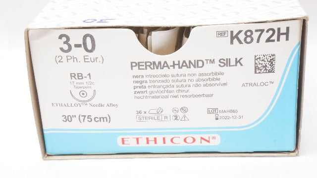 - Ethicon K872H 3-0 SILK RB-1 17mm 1/2c Taper 30inch - Box of 30 (x)