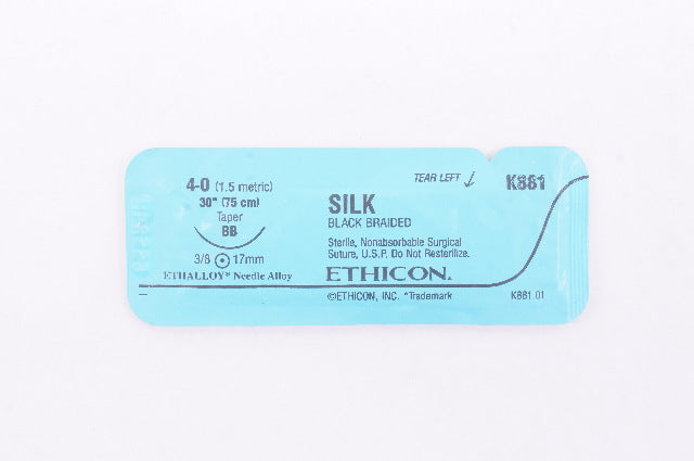- Ethicon K881 4-0 SILK, Black Braided, Taper BB 3/8 17mm Ethalloy 30inch