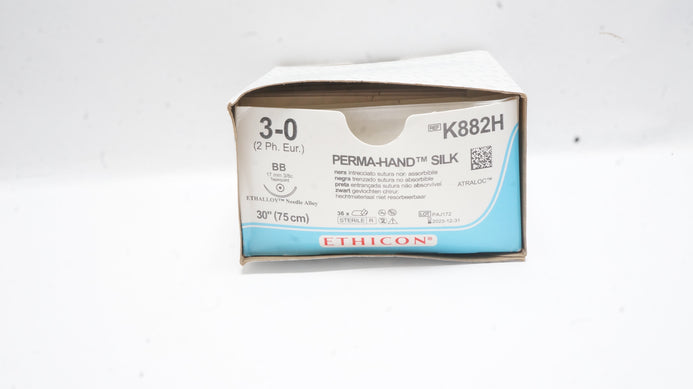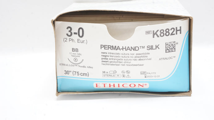 - Ethicon K882H 3-0 Perma-Hand Stre BB 17mm 3/8c Taperpoint 30inch(x) - Box of 36