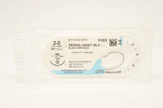 - Ethicon K883 2-0 Perma-Hand Silk BB 17mm 3/8c Taper, 30inch