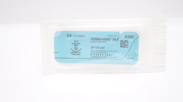 - Ethicon K890 5-0 Perma-Hand Silk C-1 13mm 3/8c Taper, 30inch (x)