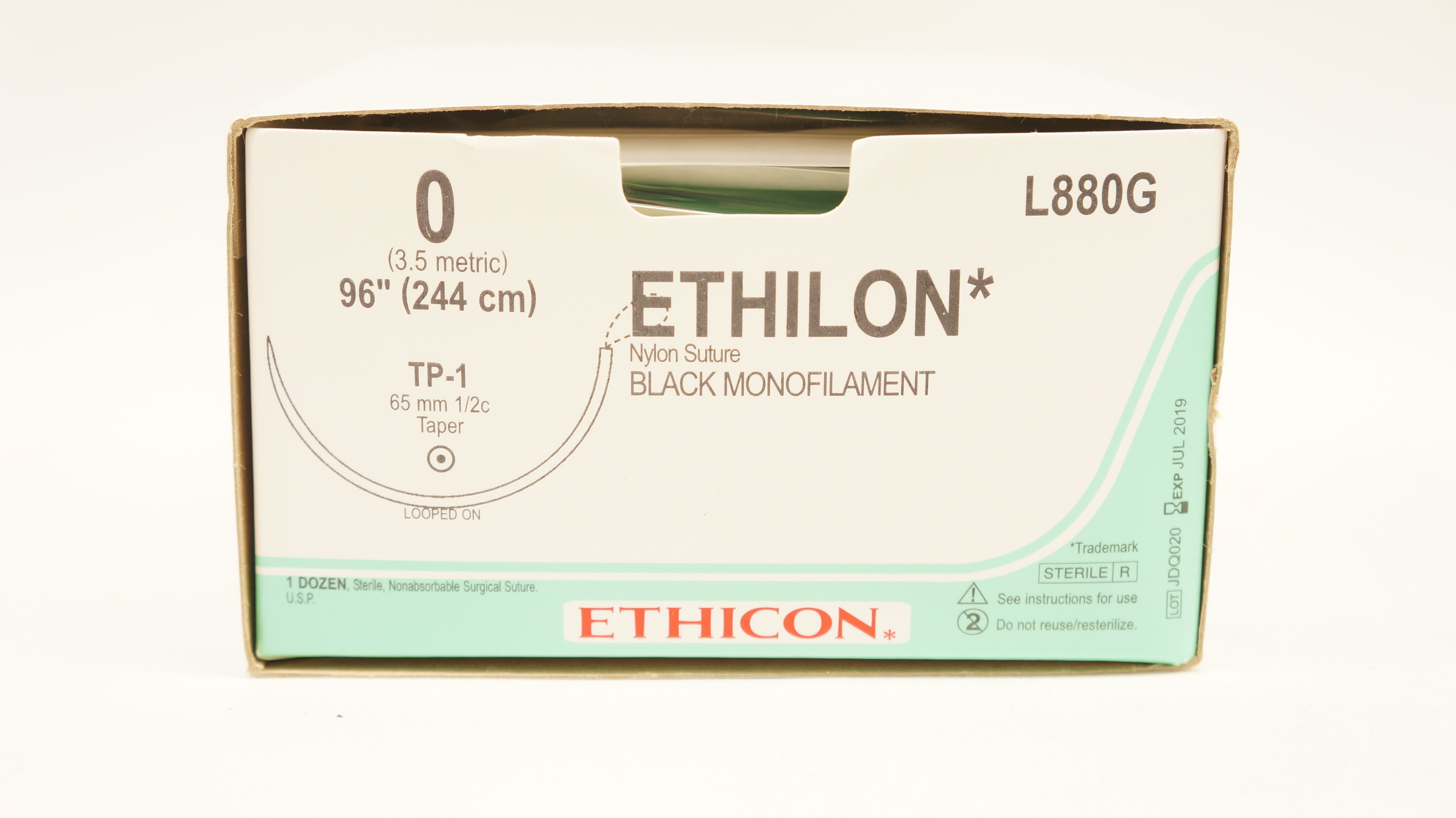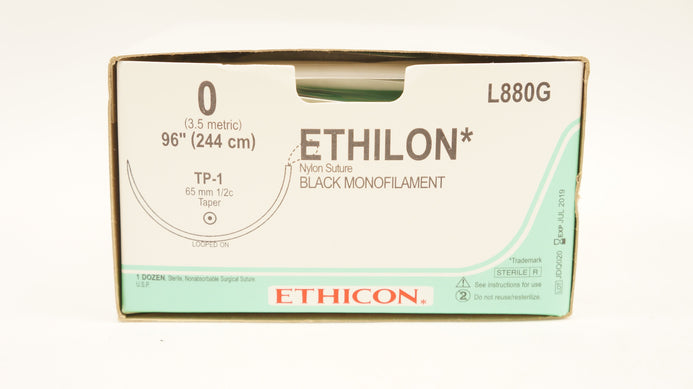 - Ethicon L880G 0 Ethilon Black Monofilament TP-1 65mm 1/2c Taper 96in-Box of12(x)