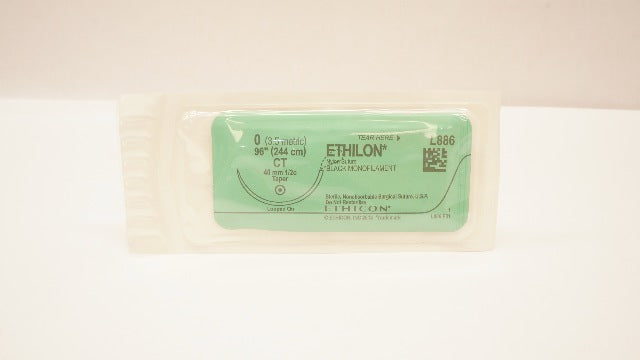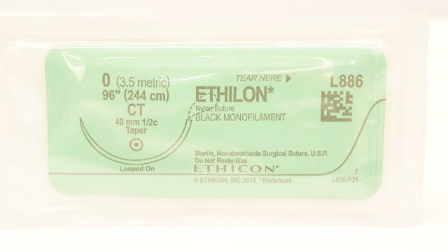 Ethicon L886 0 Ethilon Nylon Stre Black Monofilament CT40mm 1/2c Taper 96inch(x)