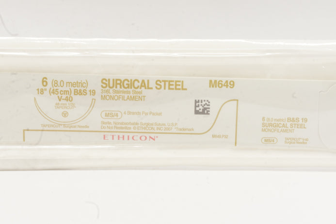 - Ethicon M649 Surgical Steel 316L Monofilament 18in V-40-Pack of 4 (x)