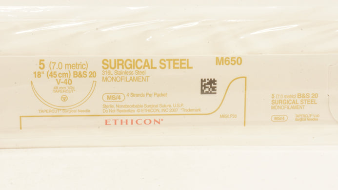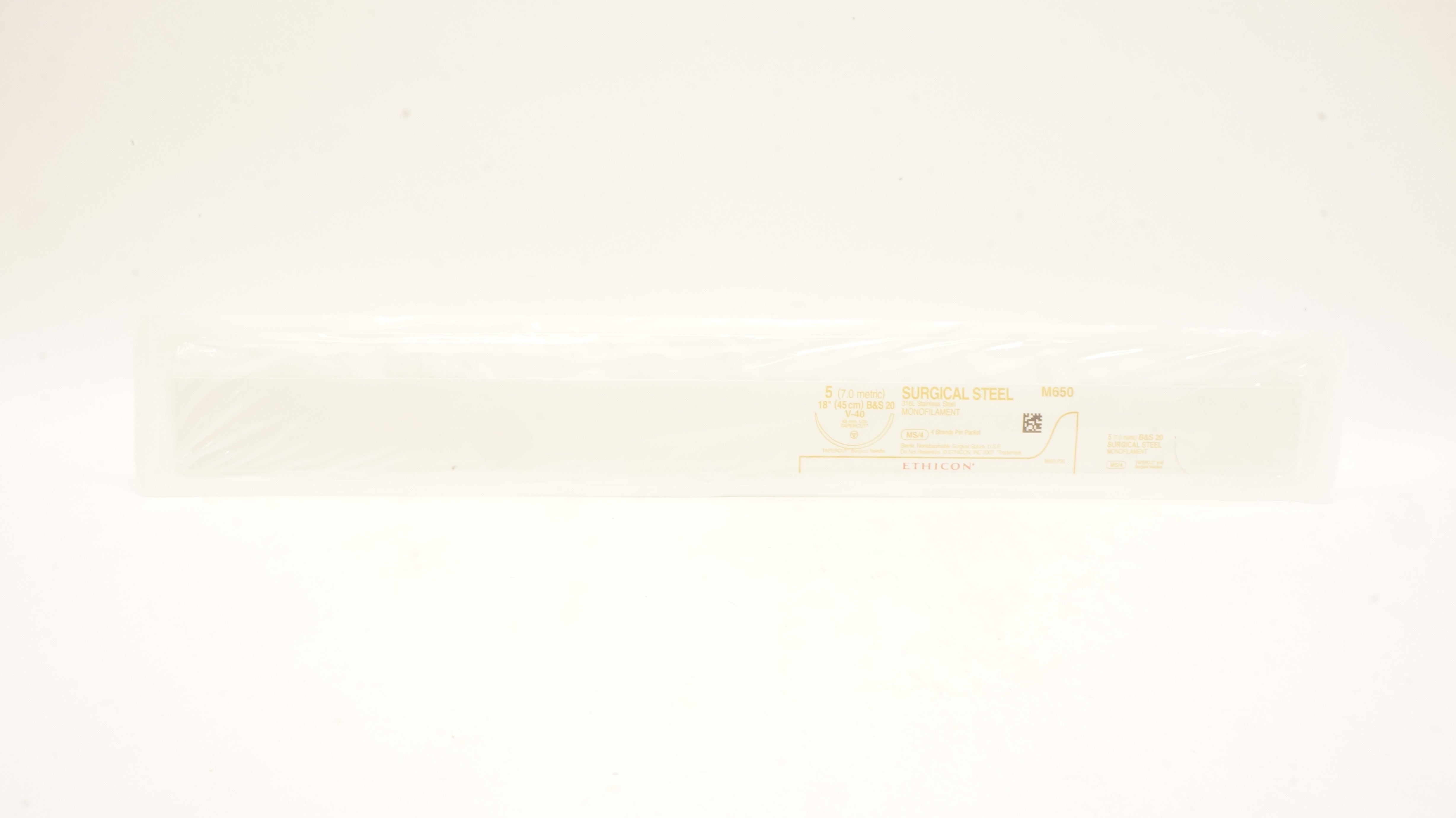 - Ethicon M650 5 Surgical Steel Monofilament V-40 48mm 1/2c Tapercut, 18inch (x)