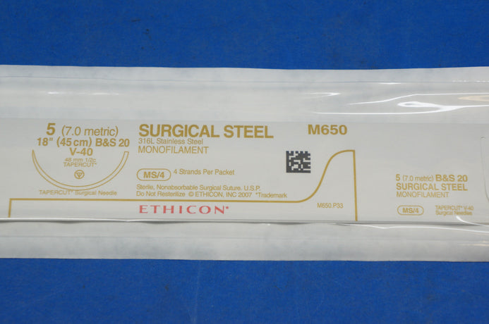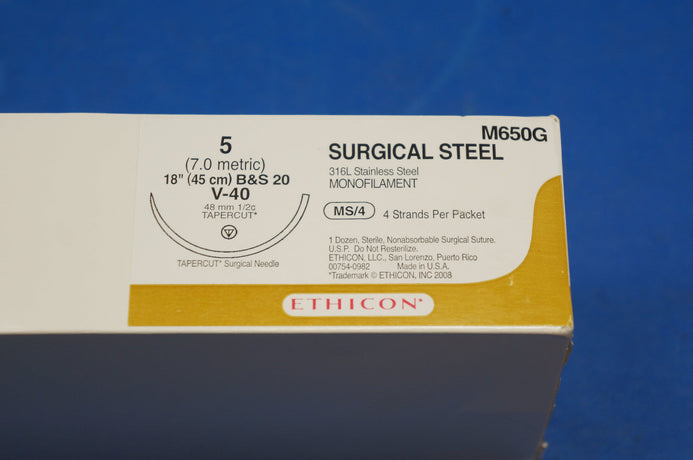 - Ethicon M650G 5 SURGICAL STEEL, V-40, 48mm 1/2c, 18inch B&S 20 ~ Pack of 11