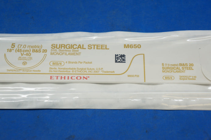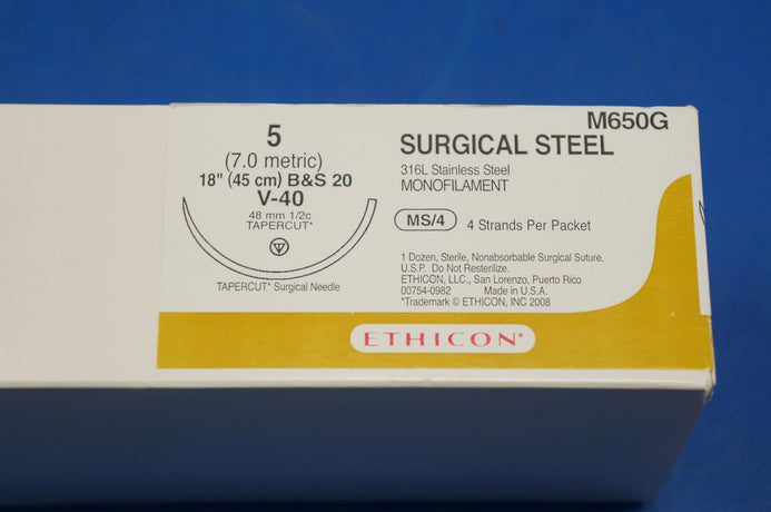 - Ethicon M650G 5 SURGICAL STEEL, V-40, 48mm 1/2c, 18inch B&S 20 ~ Pack of 12