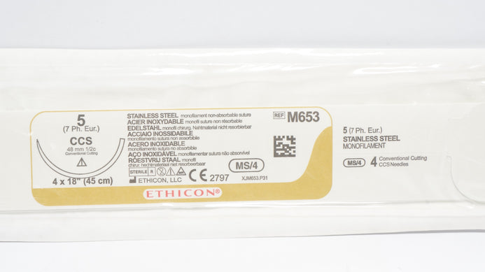 - Ethicon M653 5 Monofilament Non-absorbable CCS 48mm 1/2c 4 x 18inch (x)
