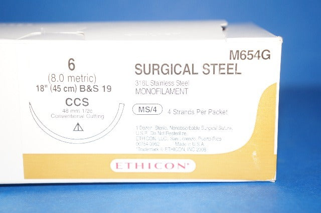 Ethicon M654G 6 SURGICAL STEEL, CCS, 48mm 1/2c, 18inch (x) - Box of 4