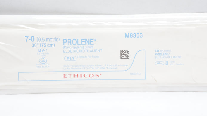 - Ethicon M8303 7-0 Prolene Stre Blue Monofilament,BV-1 9.3mm 3/8c Taper,30In (x)