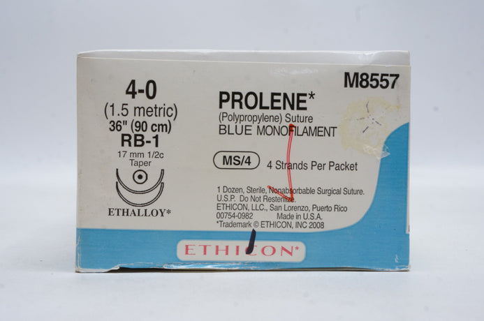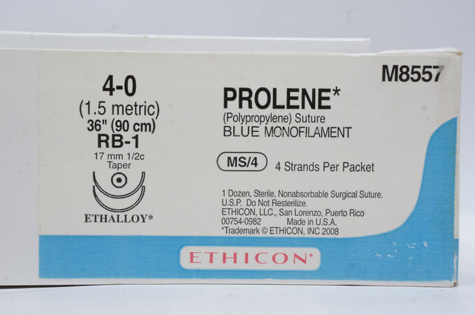 Ethicon M8557 4-0 PROLENE, RB-1, 17mm 1/2c Taper, 36inch (x) - Box of 12