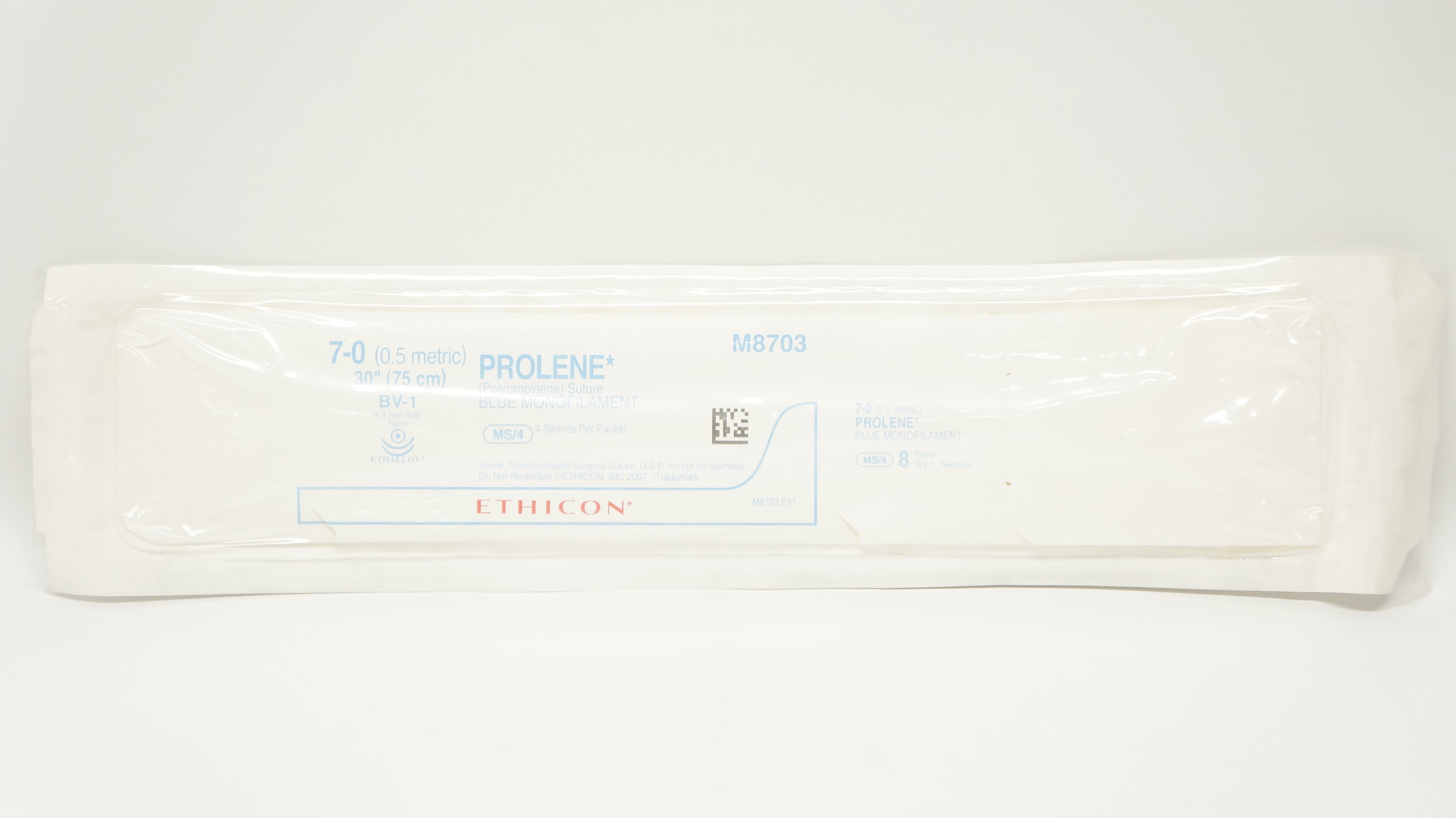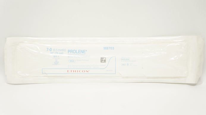- Ethicon M8703 7-0 PROLENE Stre Blue Monofilament, BV-1 9.3mm 3/8c Taper, 30inch