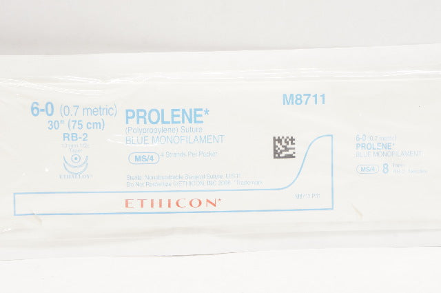Ethicon M8711 6-0 Prolene Blue Monofilament RB-2, 13mm 1/2c Taper, 30inch