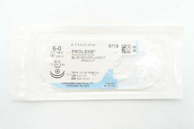 - Ethicon M8718 6-0 Prolene C-1 13mm 3/8c Taper, 18inch (x)