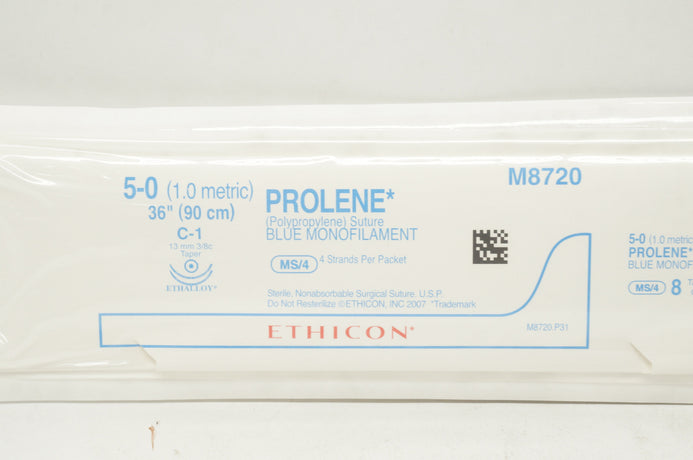 - Ethicon M8720 5-0 Prolene Polypropylene Stre C-1 13mm 3/8c Taper, 36inch (x)