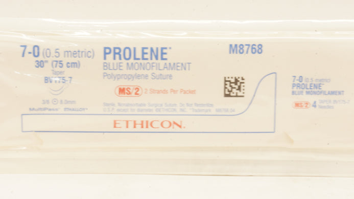 - Ethicon M8768 7-0 Prolene Stre BV175-7 3/8 8.0mm Taper, 30inch (x)