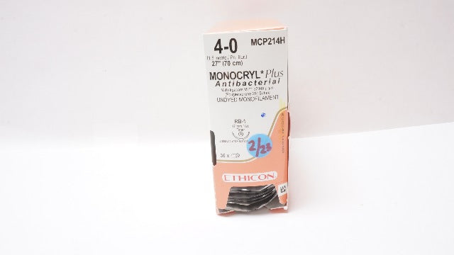 - Ethicon MCP214H 4-0 Monocryl Plus, RB-1, 17mm 1/2c Taper, 27inch (x) - Box of 33