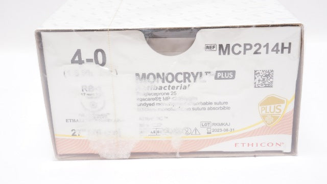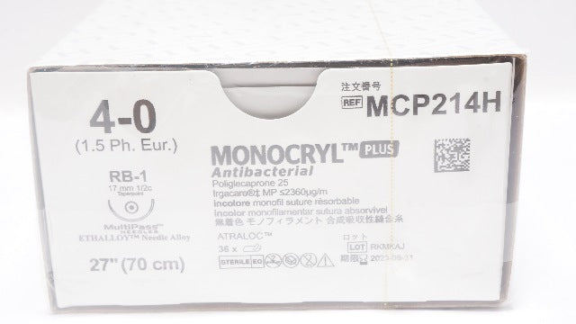 Ethicon MCP214H 4-0 Monocryl Plus Stre RB-1 17mm 1/2c Taper 27inch (x)-Box of 36