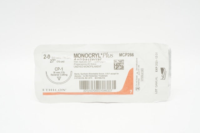 Ethicon MCP266 2-0 Monocryl Plus CP-1 Reverse Cutting 36mm 1/2c, 27inch (x)