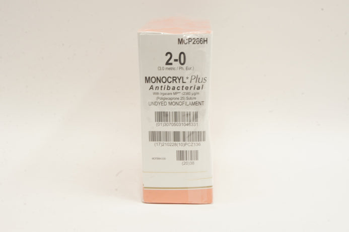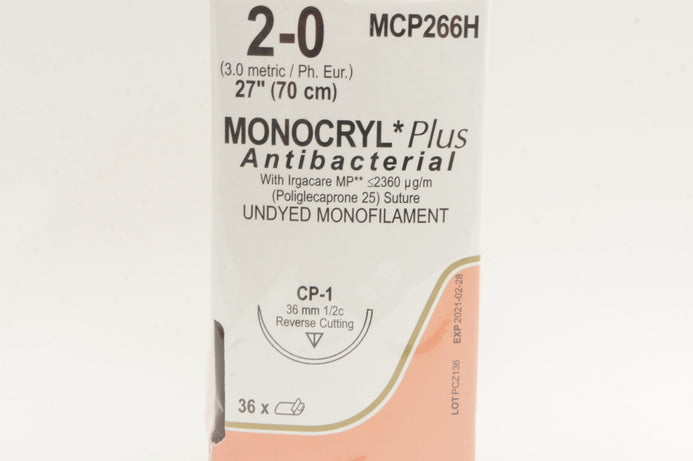 - Ethicon MCP266H 2-0 Monocryl Plus Stre CP-1 36mm 1/2c, 27inch (x) - Box of 36