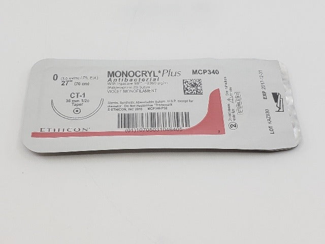 - Ethicon MCP340 0 MONOCRYL, CT-1, 36mm 1/2c, 27in. (x)