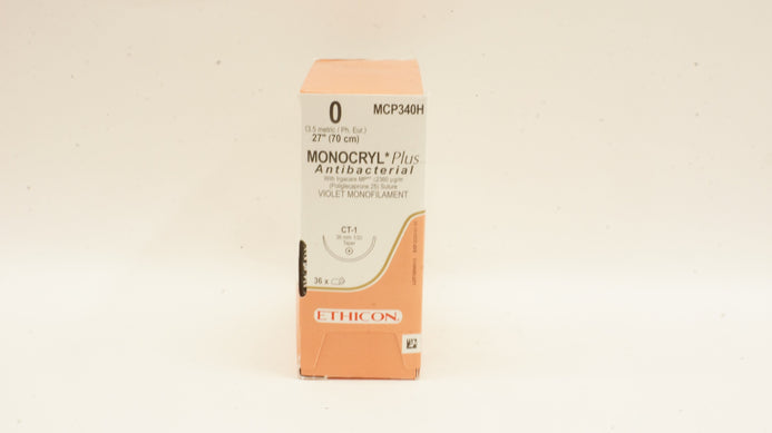 - Ethicon MCP340H 0 Monocryl Plus Stre CT-1 36mm 1/2c Taper 27inch (x) - Box of 36