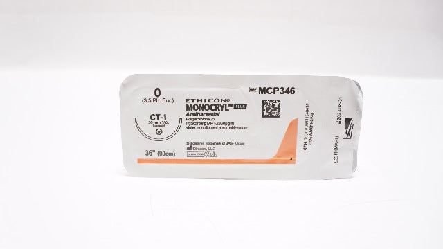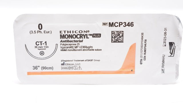 - Ethicon MCP346 0 MONOCRYL Plus, CT-1, 36mm 1/2c Taper, 36inch (x)